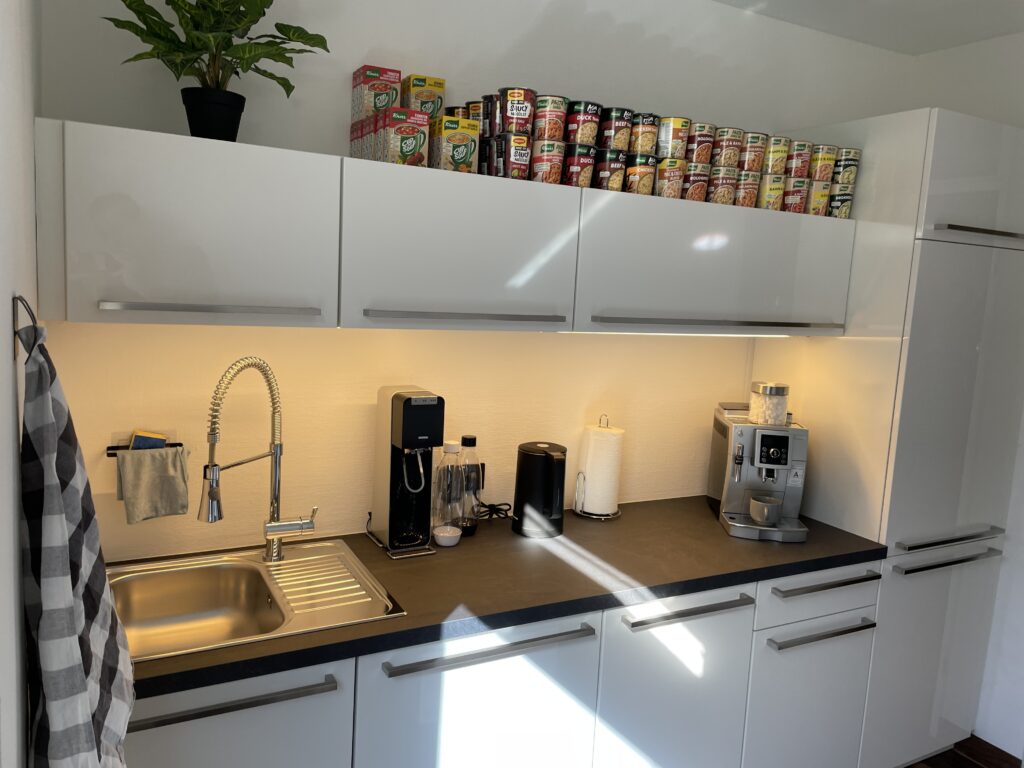 Mit der kompletten Erneuerung der Küche wollten wir einen Raum schaffen, der nicht nur funktional ist, sondern auch dem Innovationsgeist unserer Firma entspricht. Die neue Küchenzeile ist mit modernsten Geräten ausgestattet, die es unseren Teams ermöglichen, Mahlzeiten zuzubereiten und gemeinsam zu genießen.