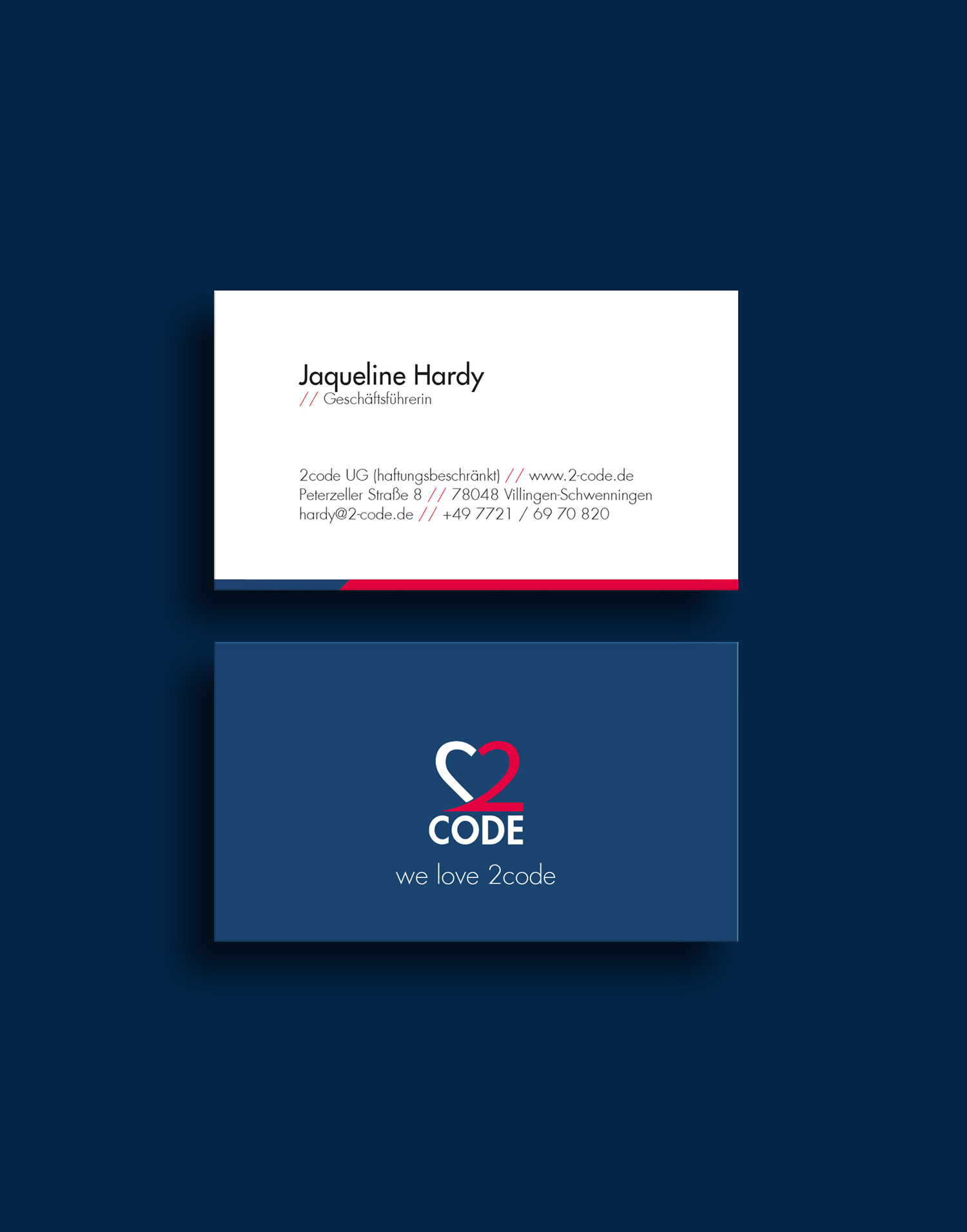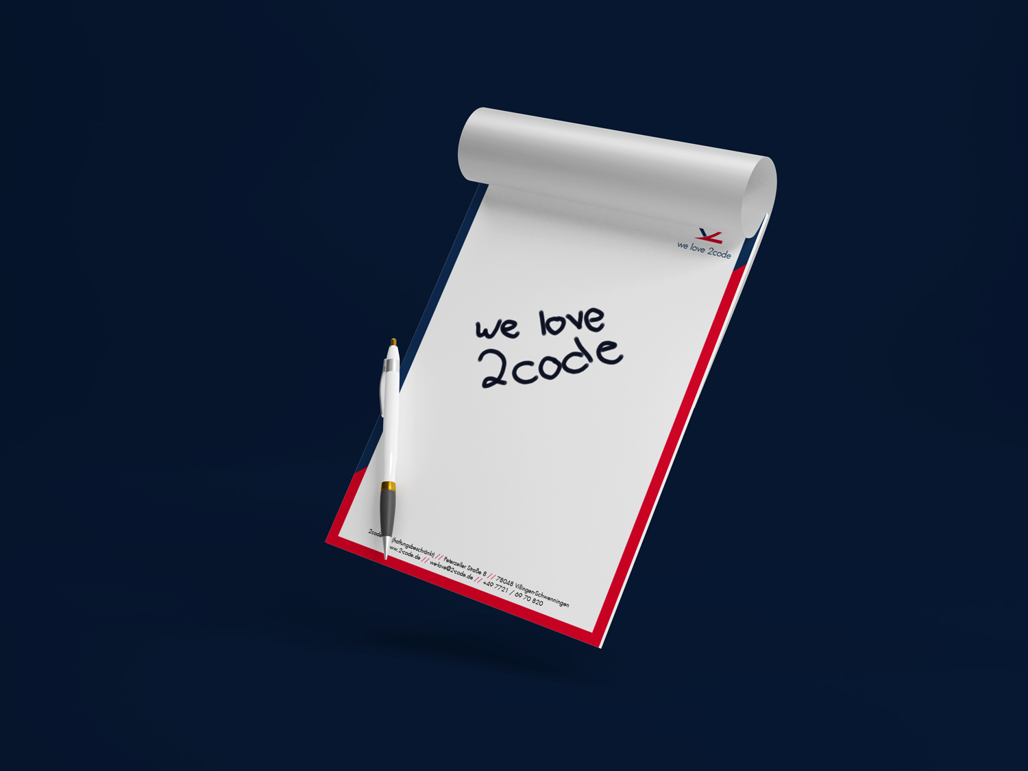 Für unseren Kunden 2Code, eine WordPress-Agentur aus Villingen-Schwenningen, haben wir das komplette Corporate Design neu entwickelt. Von Logo und Farben bis zu Schriften und Geschäftsausstattung – alles wurde einheitlich gestaltet und auf die Marke abgestimmt.